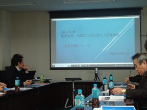 日頃から当社で心掛けている「安全作業について」「業務評点の向上にむけて」と題して当社社員から説明がありました。